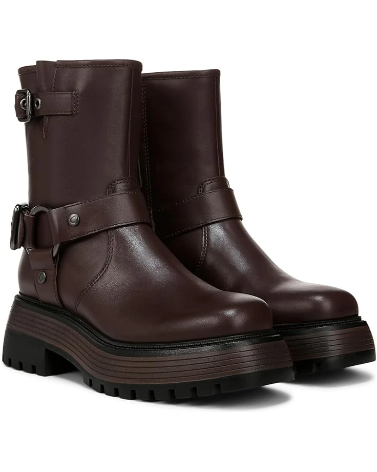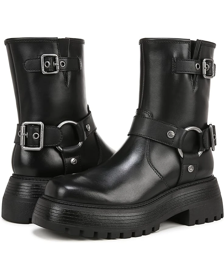 - Introducing your moto must-have for the new season, the Circus NY by Sam Edelmanยฎ Hadley boots feature harness details and chunky lug synthetic outsole. These ankle boots are crafted with a synthetic insole and lining that make them comfortable to wear for long hours. The leather upper of these boots is styled with a zippered side closure and two buckle straps. Pair these leather boots with baggy trousers and a vintage T-shirt for a comfy-cool look.