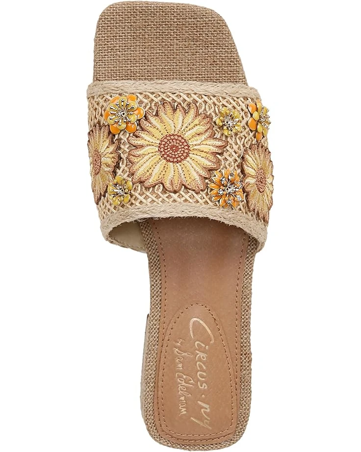 - Step into elegance with Circus by Sam Edelmanยฎ Josie slides. These sandals feature a stunning lace-net detail on the upper adorned with floral embroidery, adding a touch of sophistication to your look. With an easy slip-on style and open square toe, they offer both convenience and style.