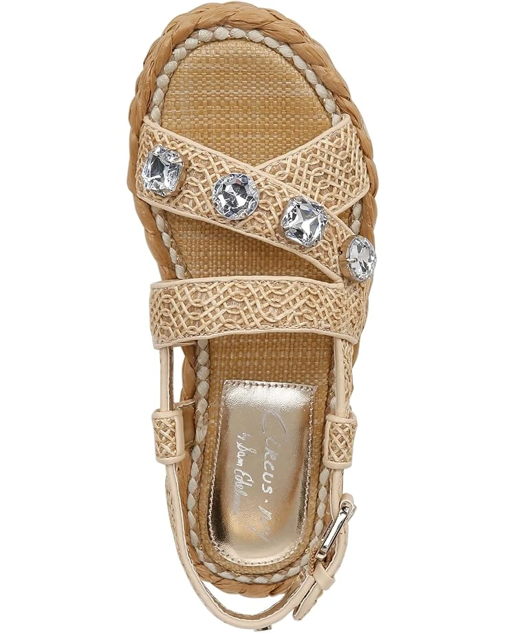 - Bejeweled and braided, the Circus NY by Sam Edelmanยฎ Wrigley Wvn Sandals is ready to elevate your look effotlessly. The sandals feature a strappy polyester upper, polyester lining, and foam insole for enhanced cofmort. The buckle closure on the back allows a customizable fit.