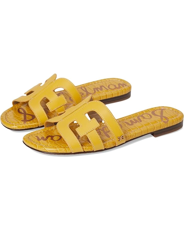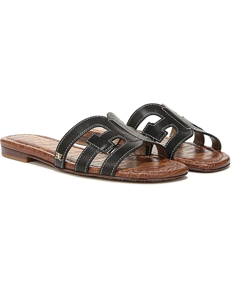 - Our Bay Slide Sandal is warm-weather chic. Versatile and easy to match, this slide sandal for women looks great from poolside to the polo grounds. Designed to stand out in a variety of colors and materials, you can be sure to find the perfect Bay slide on sandal for any occasion! Wear these leather slide sandals with cutoff jeans or a simple, flowing sun dress.