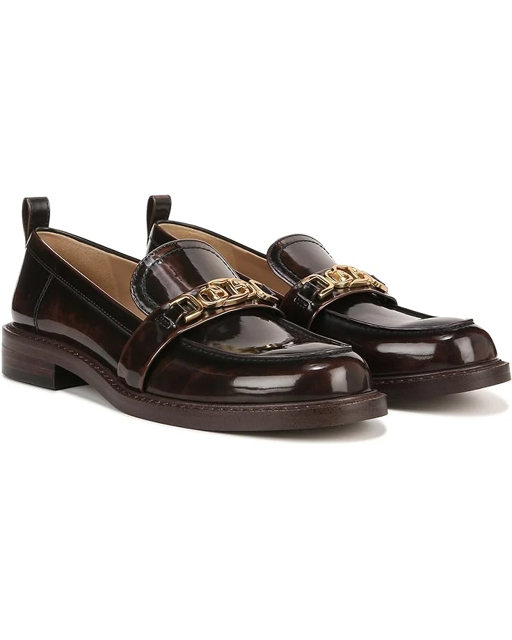 I think these are the third pair of loafers I have ever owned in my life and I’m regretting not using this style of shoe more often. I gained weight after having two children and I noticed my foot size increased, but not by much. After a recent 50 pound weight loss I noticed my shoe size went back to my normal size 10. So, these fit true to size for me. Upon arrival, I stepped right into them with bare feet just to try the fit and was happy to see they fit well. After putting on thin dress socks, they still felt comfortable and that eased my mind knowing the socks will prevent possible chafing or blisters. Eventually the leather conformed to my feet as they warmed up from my foot and they felt more comfortable the longer I wore them. The inside soles are padded and support the bridges of my feet. Did I mention these loafers are comfortable? So far, I have walked on cement, hard wood floors and carpeting. These don’t make any sounds from the inside, probably because I wear a dress sock. When walking on my kitchen floor, they aren’t loud, but I can still hear my steps but isn’t a big deal to me. If you want to be more stealth-like, you may want to consider a shoe with a softer rubber bottom as the bottoms of these loafers are very sturdy but in my opinion, perfect for me. I like how the silver and gold buckle detail allows me to wear silver or gold jewelry or both with my outfits. They look more dressy than casual but with the right clothes, these will add just the right amount of class for your business casual style.