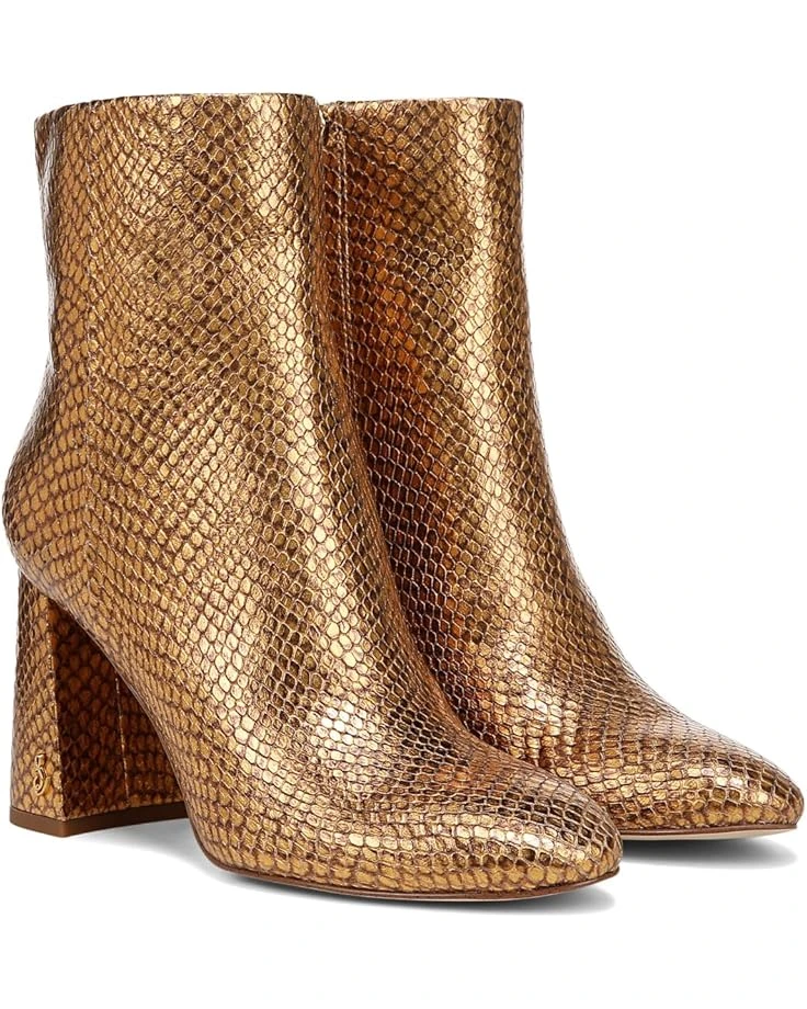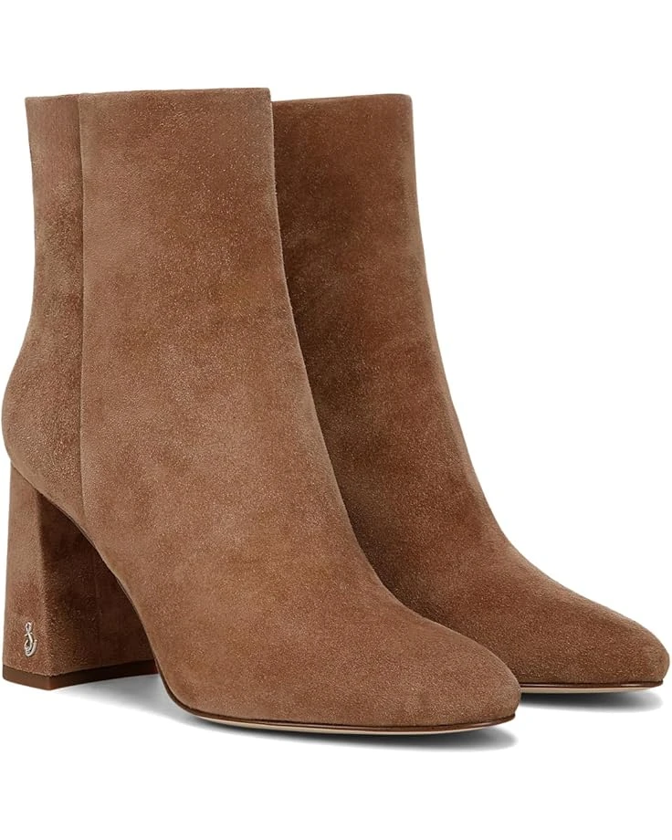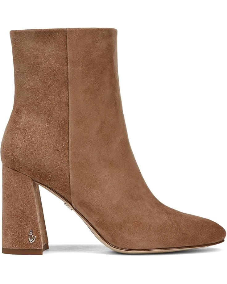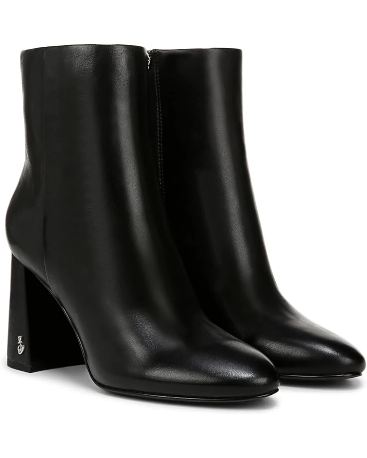 - With a polished almond toe and block heel, the Sam Edelman® Daria ankle boot will take you into any season on a high note. The pair features leather upper construction with flared block heel and side zipper for easy entry.