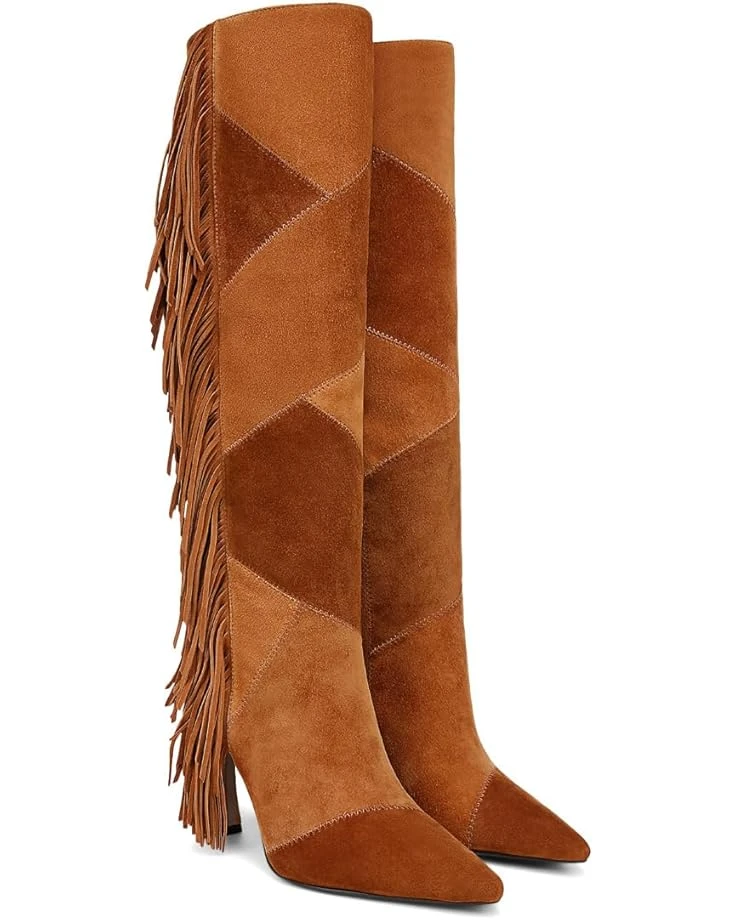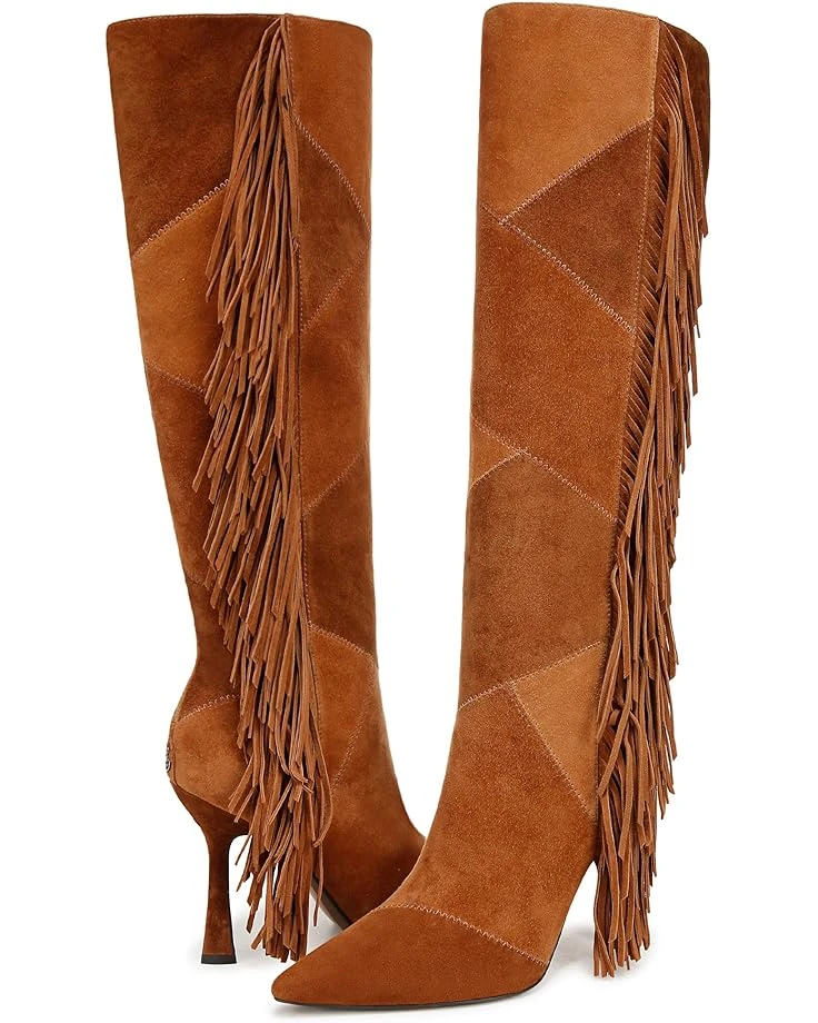 - Step out and showcase your ’70s off-duty model vibes wearing the Sam Edelmanยฎ Ellis. The knee-high pair is the perfect boot for a retro look with patchwork paneling and dramatic fringe details. The upper features leather construction with block heel and pointed toe silhouette.
