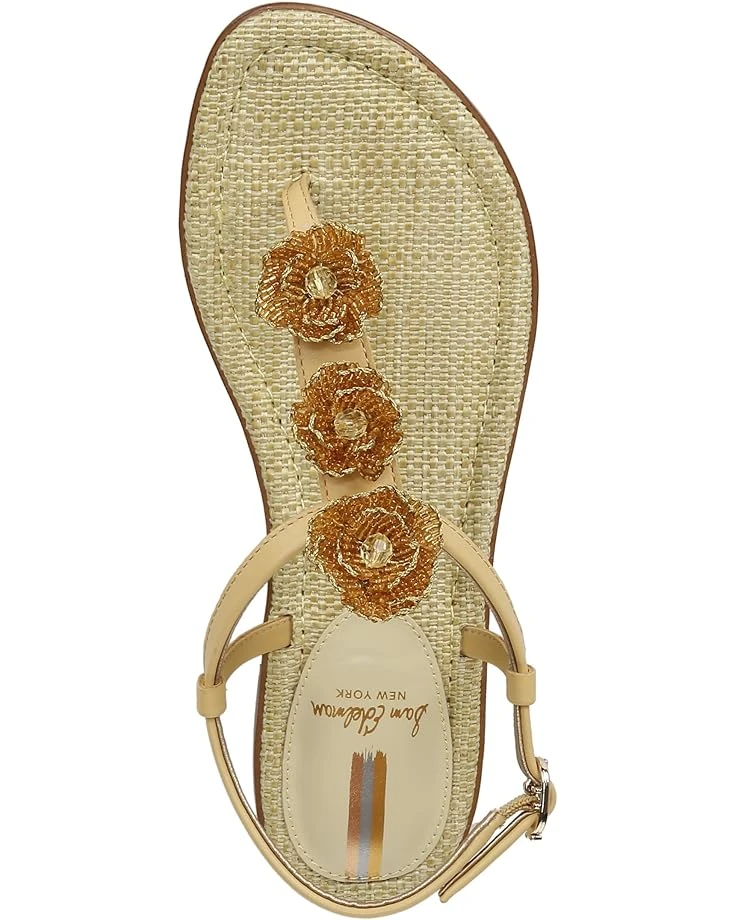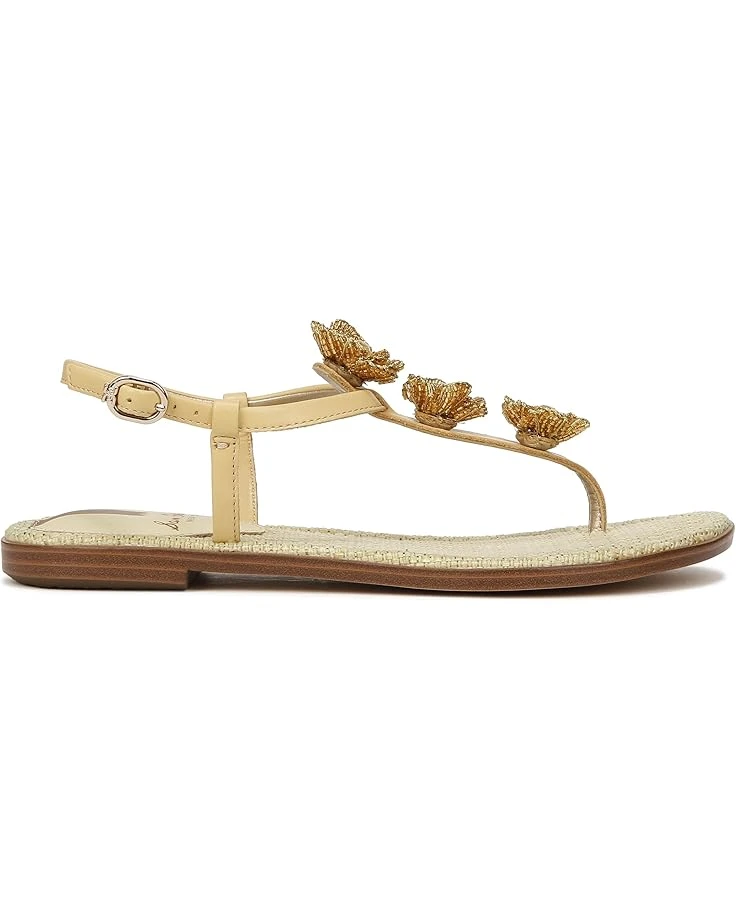 - Experience summer vibes with Sam Edelman® Gigi Flora Sandals. These thong-style sandals feature a chic T-strap adorned with delicate floral appliques, adding a touch of elegance to your warm-weather look. The flat heel ensures comfort for all-day wear, while the oblique toe shape adds a unique twist to this stylish and versatile footwear.