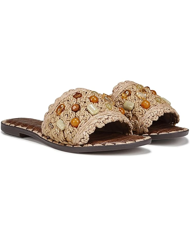 - Be prepared for ultimate comfort wearing the Sam Edelman® Graciela. Crafted from fabric upper, this pair of flat sandals features open round toe, eye-catching detailing on the vamp, low-stacked heel, and brand detailing on the footbed.