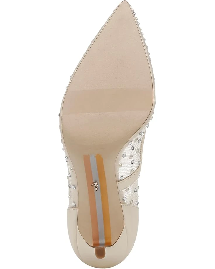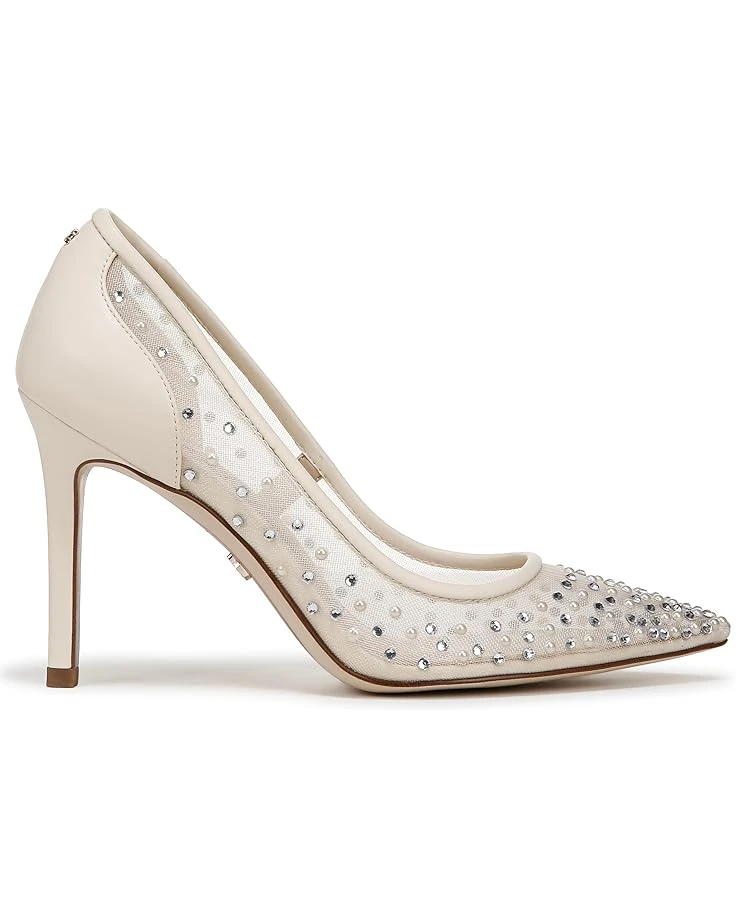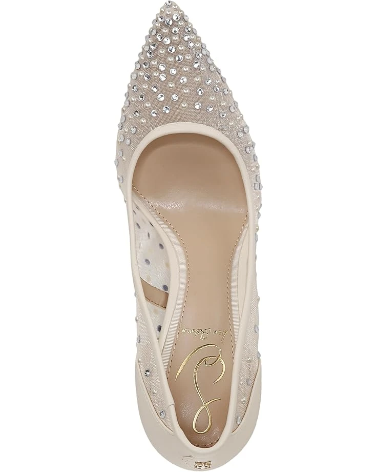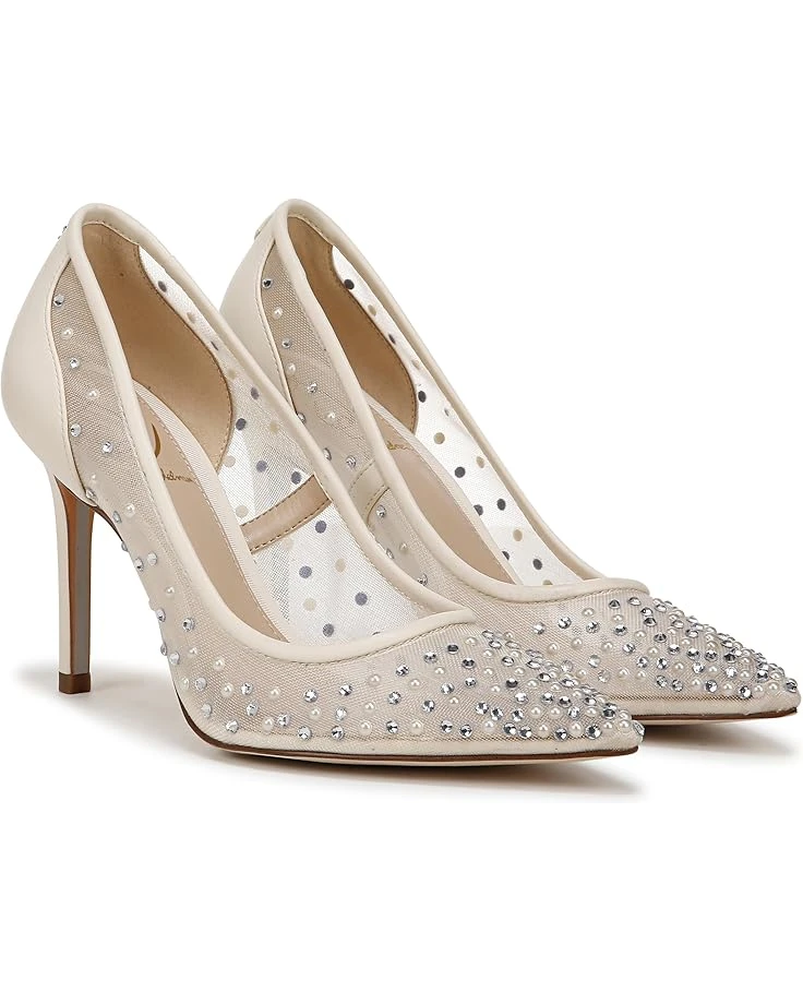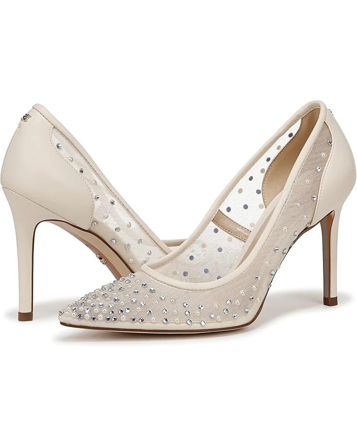 - The Sam Edelmanยฎ Hazel Mesh 2 Pumps give fresh twist to your look with its mesh upper and stunning crystal detailing. Add a pop of street-chic by pairing them with distressed jeans and a bold graphic tee. The slip-on style pumps feature a faux leather lining and insole. These are beautifully detailed with a stiletto heel and a pointed toe shape.