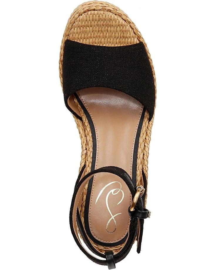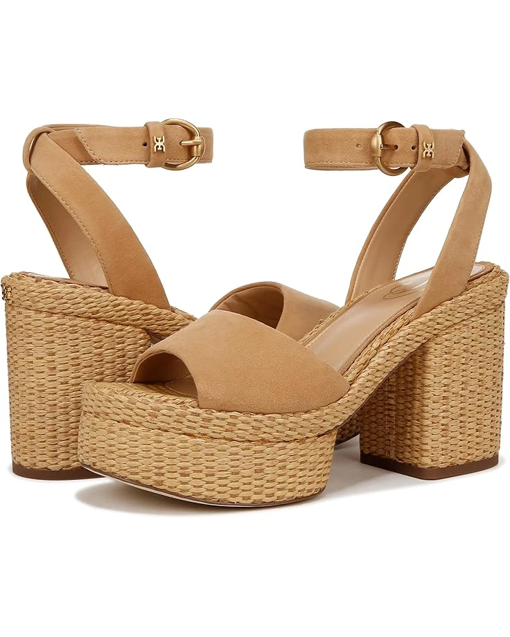 - Unleash your inner fashionista wearing the Sam Edelman® Immie. It is crafted from fabric upper, synthetic lining, and polyurethane footbed. This pair of sandals features block heels, ankle strap bucked closure, round toe design, wide strap on the vamp, and brand detailing on the footbed.