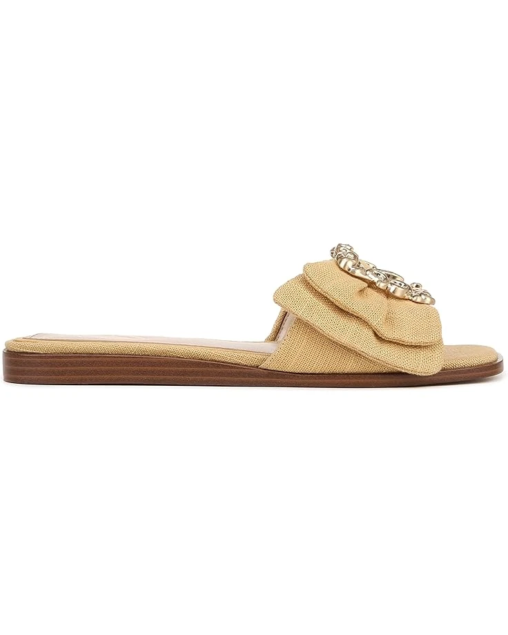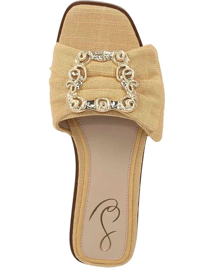 - Featuring a gold-tone buckle with rhinestone detailing, the Sam Edelman® Ivana flats are perfect to pair with your dresses and chic outfits. Easy to slip on and off, the synthetic lining of these flats makes them comfortable to wear all day. Whether you’re getting ready for a casual date or for an event, these stylish sandals are a great choice.