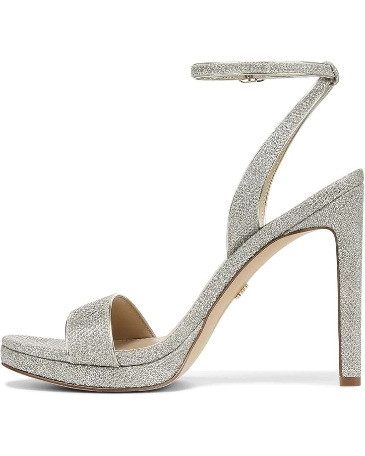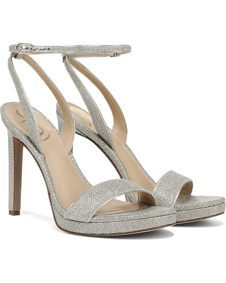These are the most comfortable high heeled sandals that I have ever worn. I have 4 pairs in black suede, pink, nude and this metallic style. Love!