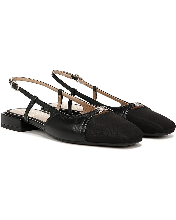 - Featuring a squared cap toe with a jeweled logo accent at the keyhole and a slingback strap with an adjustable buckle closure, the Sam Edelman® Kara 2 emanates beauty and classic elegance. These casual chic flats are crafted with a leather upper, a faux leather lining, and a lightly padded faux leather insole, offering a premium style along with comfort.