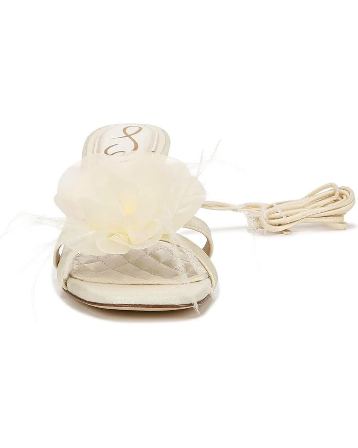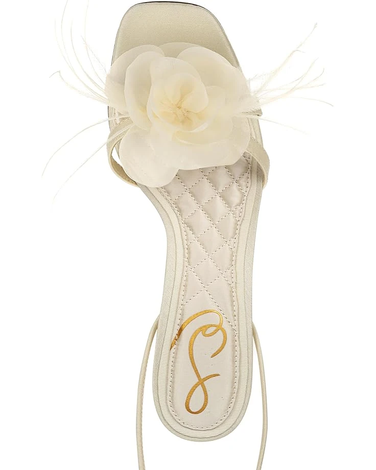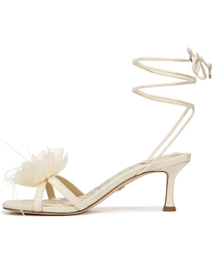 - Upgrade your footwear collection by wearing the Sam Edelmanยฎ Pammie heels. Stylish and sleek, the ankle stripe design with buckle closure ensures a secure fit and a statement look. It features an open square-toe design with an elaborate floral motif on the fabric upper. The fabric lining and polyurethane footbed adds comfort to the feet for a prolonged wear.