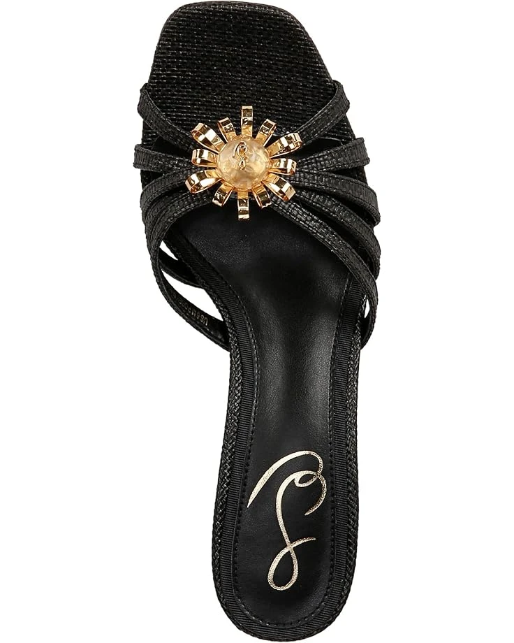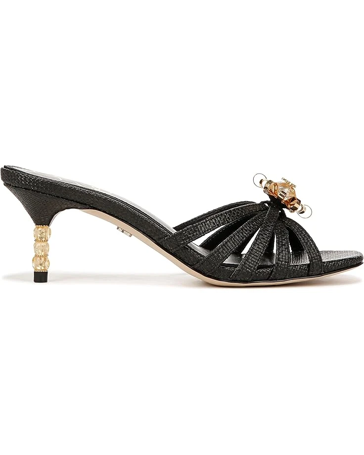 - The Sam Edelmanยฎ Posey heel will keep you both looking good and feeling great. This stylish and shiny kitten heel features gold-tone accents with stone detailing on the tongue, slip-on construction, and polyurethane upper.