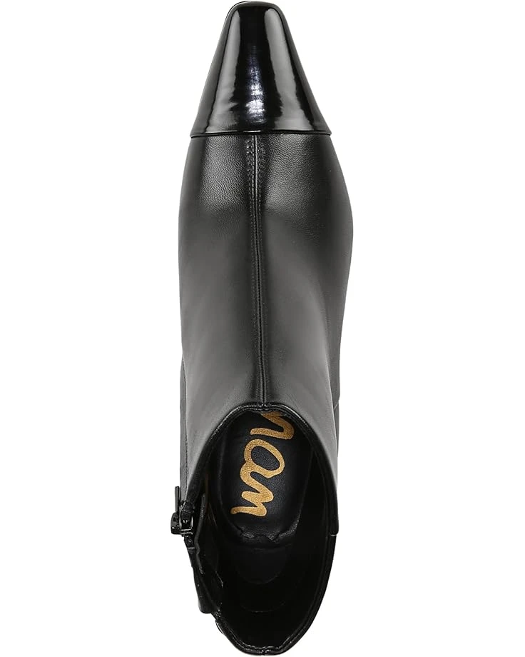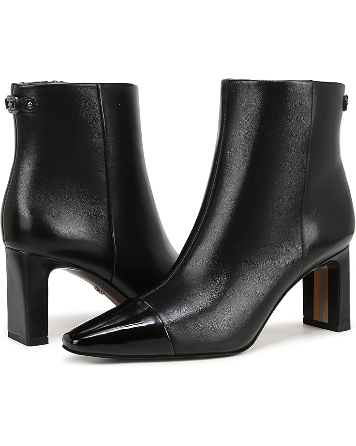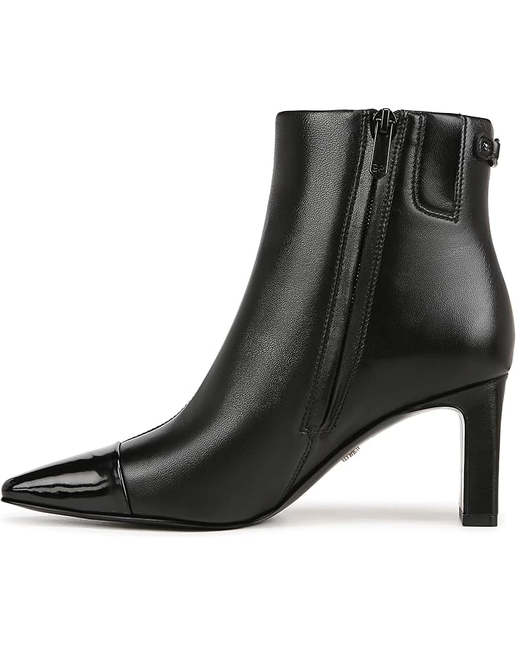 - A perfect choice to play up your favorite LBD or wrap dress, meet the Sam Edelman® Saige 2 boots with architectural heel detail. The leather upper of these boots features a zippered side closure and heel pull loop that offer easy on and off. These heeled boots are designed with a faux leather insole and lining for added durability. Flaunt your great style and fashion wearing these leather boots.