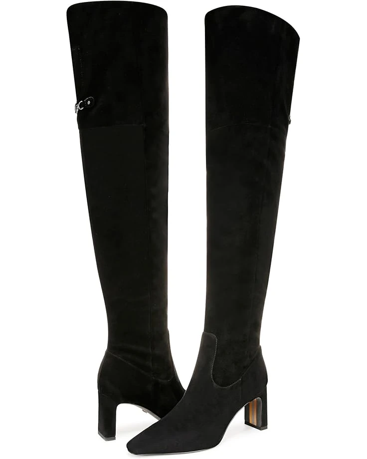 - The Sam Edelman® Shea boots are the perfect over-the-knee boots that everyone needs in their wardrobe. These boots are crafted with a leather upper, polyurethane insole, and polyurethane lining. The zippered side closure offers easy on and off. Wear over jeans or under a flowy skirt, these leather boots can do it all.