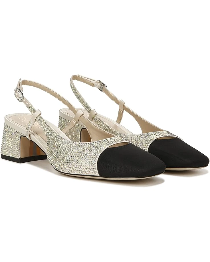 - Make a glitzy statement whenever you step out of the house donning the Sam Edelman® Tarra Glitz sandals. With their dazzling rhinestone embellishments and contrasting toes, these sandals bring an alluring touch to every look you pull off.