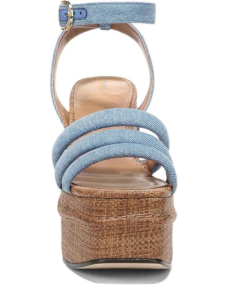 I love Sam Edelman shoes and these are my favorite, they’re absolutely beautiful. I really like the denim material they look great with any outfit and the quality is amazing! The platform is the perfect height and the thick strap makes them feel very secure. I wore them to a work event and got many compliments. They’re very comfortable and are true to size, I highly recommend!
