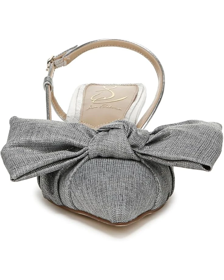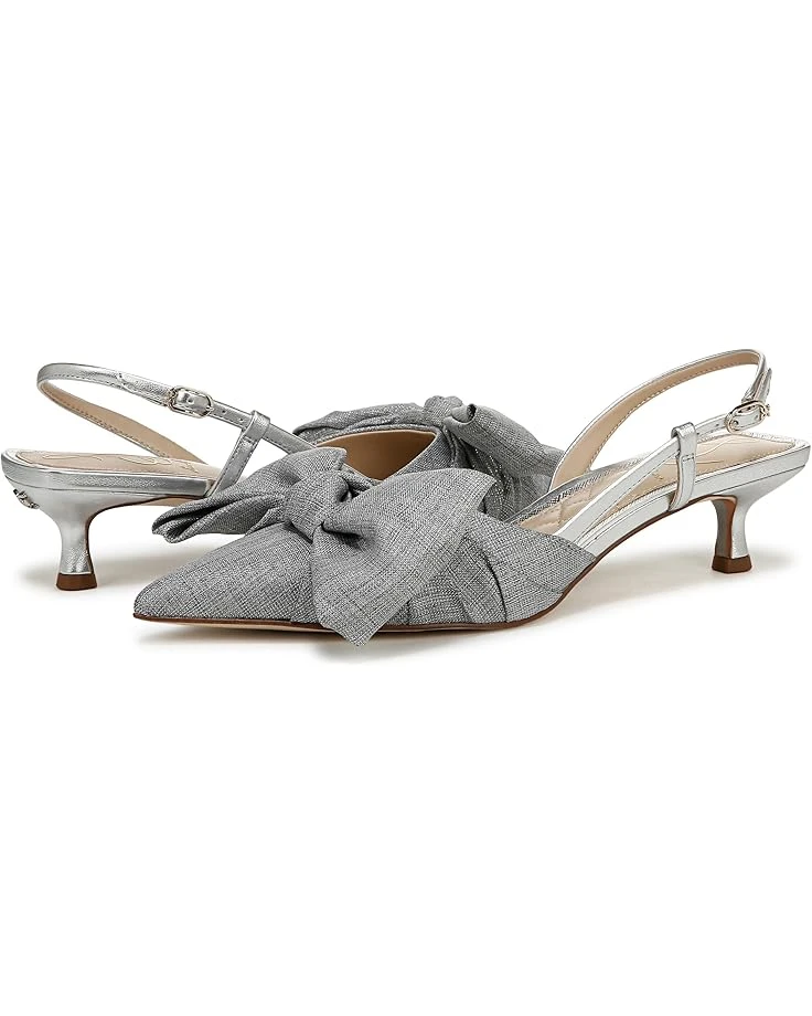 - A large silk bow detailed upper defines the exquisiteness of Sam Edelmanยฎ Treena Pumps. The slip-on footwear features low kitten heel and adjustable buckle closure on the slingback strap.